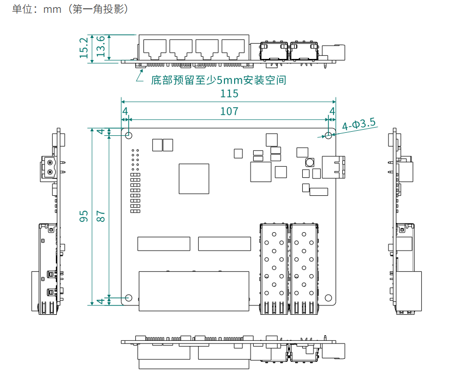安装方式:嵌入式安装 散热方式:自然冷却,无风扇 外形尺寸:115×95×15.2(mm)(不含连接器尺寸) |