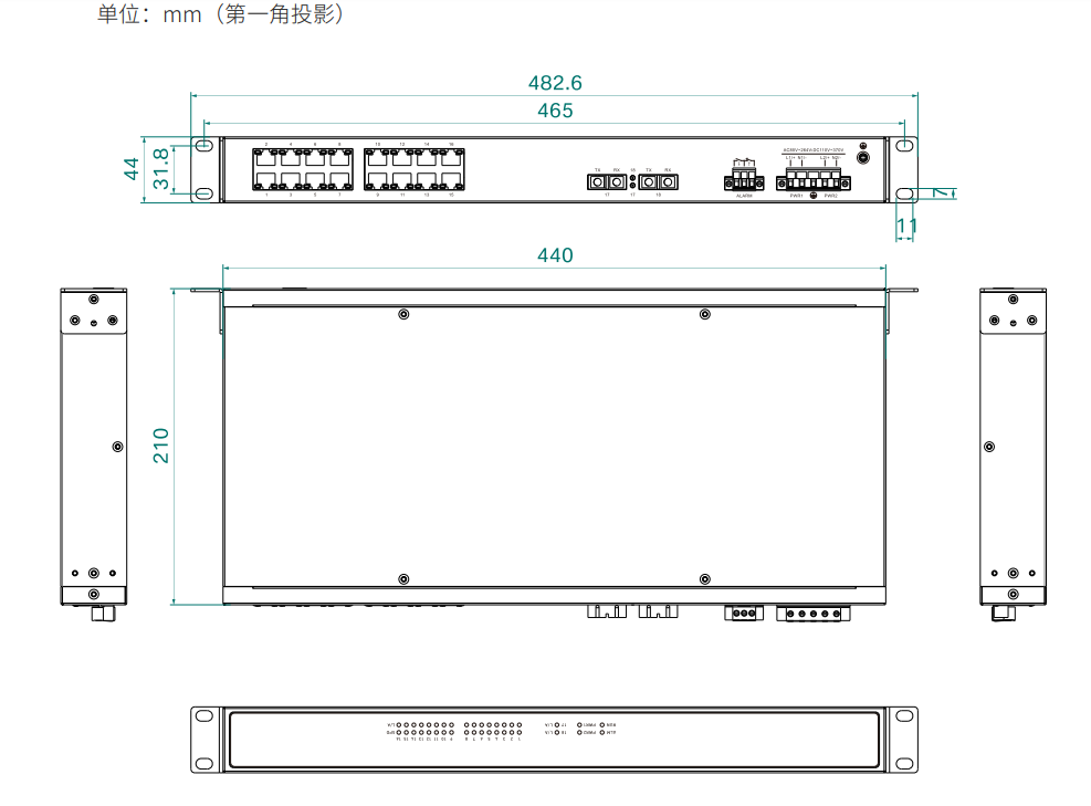 | 外形尺寸 | 482.6×44×210(mm)(含挂耳) |